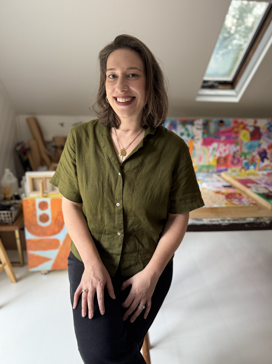 Each collage is made with fine-art materials and finished with the same level of care I give my gallery work. My background in mixed media and my belief that every child’s marks deserve to be celebrated guide every piece I create.