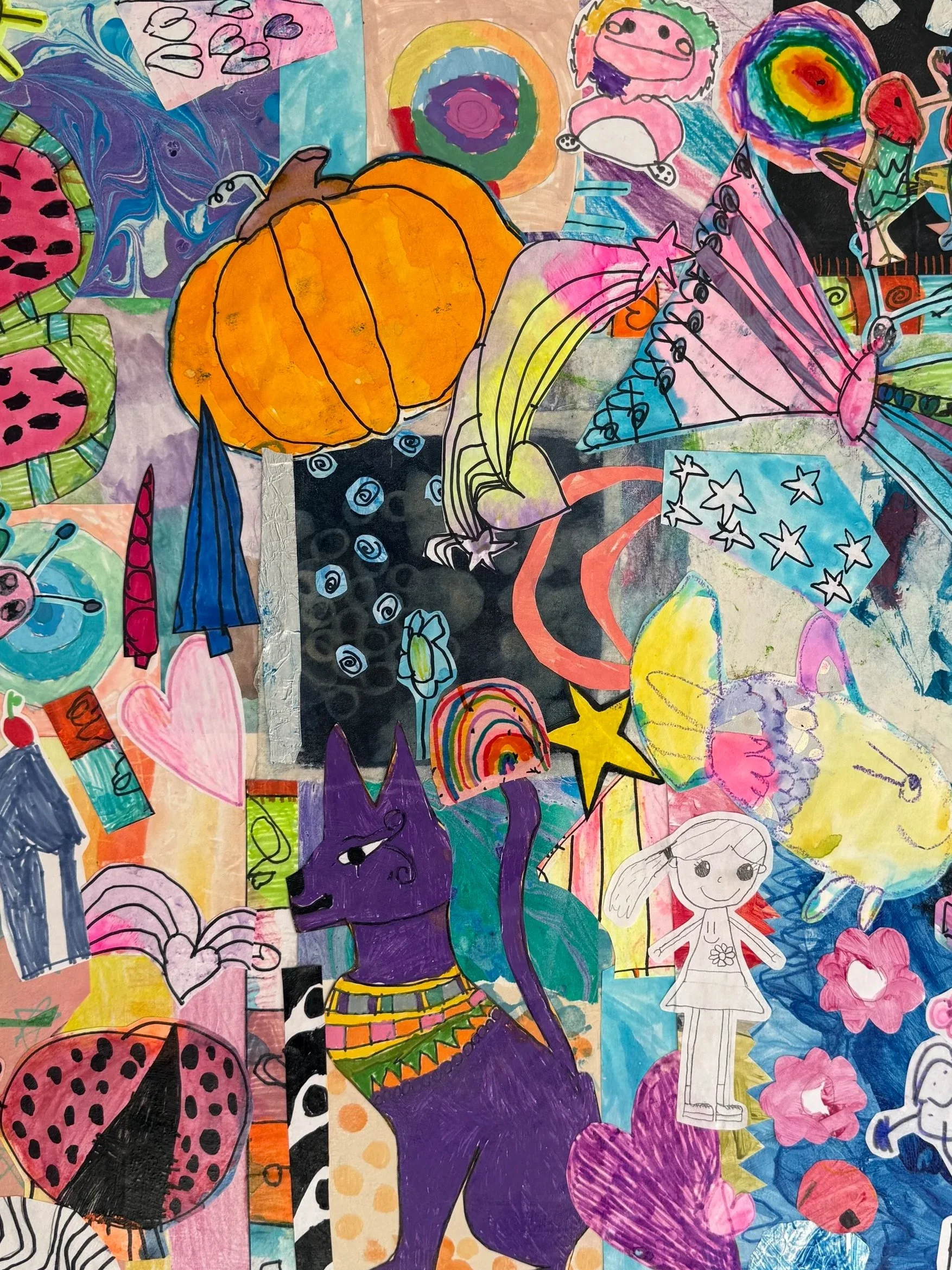 I’ve created collages for children as young as Pre-K and under, as well as for elementary, middle school, and even high school students. Each stage carries its own personality, marks, and memories.